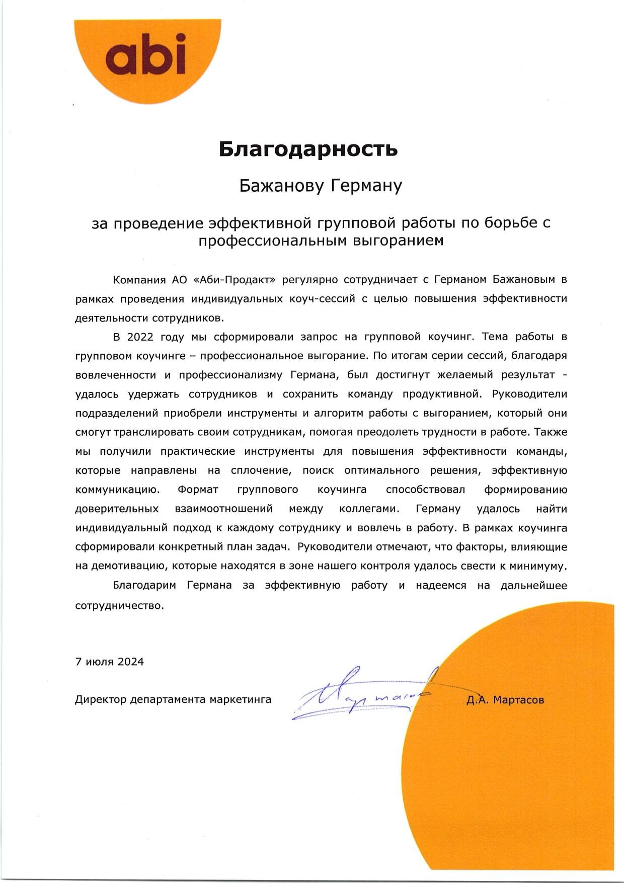 Герман, благодарю за совместно проделанную работу. С удовольствием рекомендую вас как командного коуча.